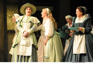 Tracy Grant Lord’s costumes move from fresh apple green through taupes and burnished ambers, ending in the spangled frocks of the final woodland scene, matching the colours of the music as the drama unfolds. Iain Aitken’s set design re-creates Tudor England in a perfect setting for the Elizabethan comedy. Directed by Simon Phillips and conducted by Antony Walker, this is Verdi in a different vein.