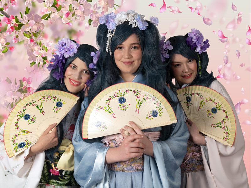 The cast includes: The Mikado of Japan Tobias Page/ Nanki-Poo (His son, disguised) Jareth Norman/ Ko-Ko (Lord High Executioner of Titipu) Dean Sinclair/ Pooh-Bah (Lord High Everything Else) Joshua Knight/ Pish-Tush (A Noble Lord) Andrew Pennycuick/ Yum-Yum (A Ward of Ko-Ko) Anne-Louise Harris/ Pitti-Sing (Her sister) Johanna Knoechel / Lesley Braithwaite/ Peep-Bo (Her other sister) Oksana Popova/ Katisha (An Elderly Lady of the Mikado’s court) Megan Chalmers