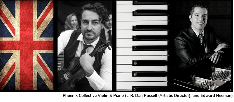 Ye Olde England – Phoenix Collective Program: Sonata for Violin and Piano No.1, Frederick Delius/ ‘The Lark Ascending’, Ralph Vaughan Williams/ – Interval -/ ‘Molly on the Shore’, Percy Grainger/ Sonata for Violin and Piano, Edward Elgar